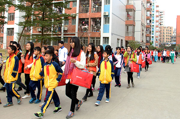 受助学生与志愿者们一起游览我校,让学生体会到温暖的关爱,虽然寒风吹席港城,但难以吹走绵延不断的爱心活动。据悉,南粤会亲活动是广东希望工程特有的公益品牌项目,是共青团着力解决青少年实际困难、关心青少年成长、构建社会主义和谐社会、建设幸福广东的重要举措。通过为农村贫困学童和社会各界的热心人士、爱心家庭搭建爱心平台的方式帮助学童健康成长。得益于社会各界的大力支持,目前共筹集数额98.8万元,资助困难学生达780多人。