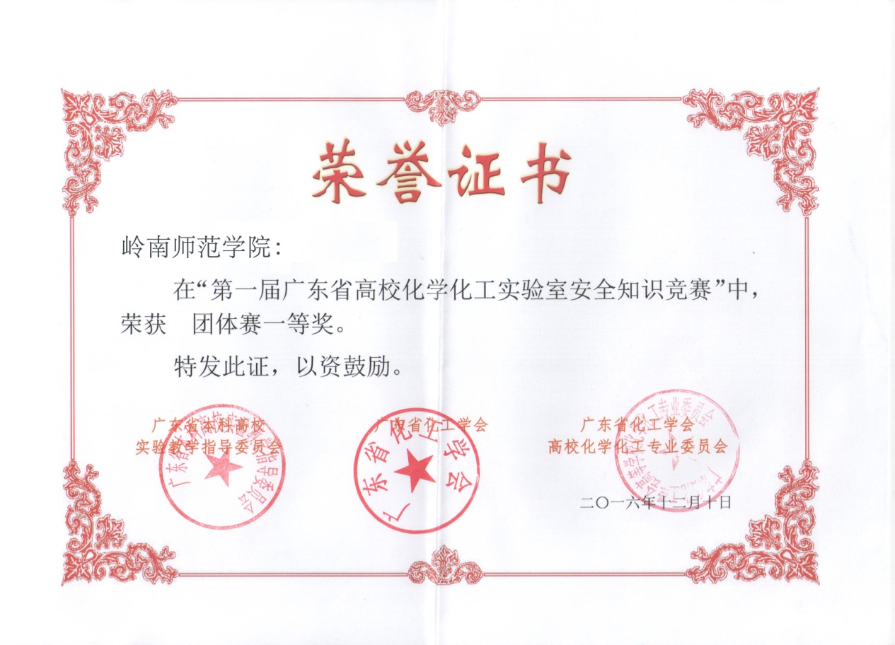 由广东省化工学会高校化学化工专业委员会和广东省本科高校实验教学指导委员会主办,广东工业大学承办的第一届广东省高校化学化工实验室安全知识竞赛于12月10日在广东工业大学落下帷幕。我校化学化工学院学子荣获团体赛一等奖。