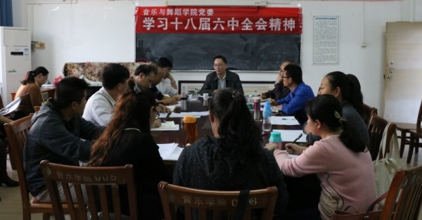 12月7日下午,音乐与舞蹈学院党委在教二四楼会议室,继续围绕“学习党的十八届六中全会精神”的主题进行集中学习。此次学习会,校党委彭权群副书记莅临指导。音乐与舞蹈学院党委书记刘福瑞、院长孙建华、党委副书记王雄艺、副院长徐金阳、教工党支部书记朱培科以及全体党员教师参加了学习会。