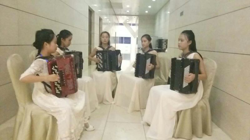 谢乐诗、文慧两位同学吉他与巴扬合奏的表演