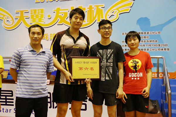 2016年湛江市“天翼 ·友谊杯”乒乓球邀请赛在中国电信湛江分公司体育馆落下帷幕。经过两天的激烈角逐,我校乒乓球队获得团体赛第六名。