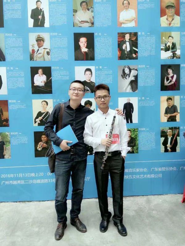 比赛前,学生们都积极备战,刻苦练习。李老师让参赛选手先后演奏了所有参赛曲目,逼真地预演了比赛情景,使他们更好地进入比赛状态。个别同学出现紧张怯场等问题,李老师都耐心的讲解和指导,并在比赛当天亲临比赛现场指导,这极大地鼓舞了选手的参赛信心,使他们在比赛前能够甩掉包袱、轻装上阵,从而取得了好成绩!单簧管专业组任博远、周超勇夺一等奖;朱进魁、黎诺怡获得萨克斯业余组二等奖,祝文豪、罗舒婷、钟海媚分别获得双簧管、单簧管以及大管业余组二等奖。