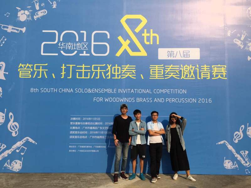 近日,由广东省管乐协会主办的2016年第八届华南地区管乐大赛决赛在广州番禺举行。此次比赛规模盛大空前,来自广东省内各大高校及喜爱管乐的1000多名选手参加决赛,在经过了湛江分赛区预赛的激烈竞争后,在音乐与舞蹈学院李世音老师的带领下,7名学生选手成功突围赴广州参赛,皆取得优异的成绩。