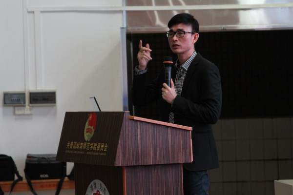 黄达海首先分析了机电工程学院2016级学生和机电等专业近年就业的基本情况,通过详实的数据、生动的事例和自身的经历,从学生普遍思考的一个问题“如何度过大学生活”讲起,重点阐述了四个观点:一是开悟比开学重要。他从机电工程学院2016年新生招生数据和近年来毕业生就业数据的强烈反差进行分析,指出机电工程学院一方面新生调剂率高、女生多的现状,另一方面历届机电毕业生就业情况良好,而且50%以上都在珠三角地区就业,反映我校机电专业乃至其他工科专业人才培养质量是有保证的,但社会和新生对师范院校办工科专业的认知不够全面。他希望学院要积极工作,为学生提供更多更好的服务,迅速稳定军心,学生要有既来之,则安之的心态,安心、积极地投入大学生活。二是心态比心情更管用。学院众多的“调剂生”要调整心态,把握主动,理性考量。他认为,本科并不是一个最终状态,从本科到研究生到工作,都只是一个调整的过程,调剂即调整,调剂生因为调剂和兴趣的双重驱使,拥有更宽泛的知识基础,发展面更大。三是经历是最好的成长。他向我们讲述了他的亲身经历,并告诫我们:未来的成功和上什么大学没有直接的联系,人的成长与进步是一辈子的事情,而大学只是其中一个让人蜕变的地方,而这种蜕变很大程度上来源于独特的经历与独立思考。四是初心是一开始的梦想。