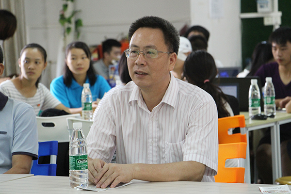 吴宁从众创空间的“实施‘牵手工程’实现创新创业产业共融”的项目介绍了众创空间取得的荣誉与成果, 2015年被认定为广东省众创空间和青创空间,再到2016年被认定为国家级众创空间。这一系列成果赢得了各级领导的首肯。接着他又介绍了由“政校企”合作开办“众创,众筹,众扶,众包”四众合一的“牵手工程”,即通过推介会,实现企业有效经营与大学生就业创业的双赢,同时也是促进企业转型和高校创业教育的双赢;同时他还介绍了“牵手工程”三大特色,分别是“平台+服务”双支撑,“导师+资源”双助力,“科研成果转化与企业转型升级”双结合,赢得了领导们对众创空间的认可和赞赏。