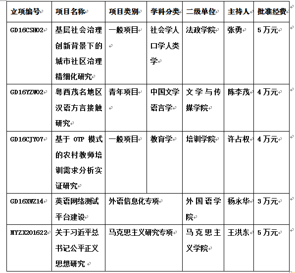 附:我校2016年广东省哲学社会科学规划立项一览表