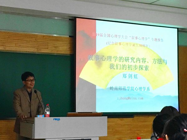 10月15日,在叙事心理学诞生30周年之际,我校心理学系郑剑虹教授在第十九届全国心理学学术会议上组织并主持召开了人格心理学专委会“叙事心理学”专题报告,与国内外学者分享了来自海峡两岸3所大学的5份研究报告。在郑剑虹教授的带领下,何吴明博士和卢伊颖老师在报告会上展示了我校团队的科学叙事心理学研究最新成果。