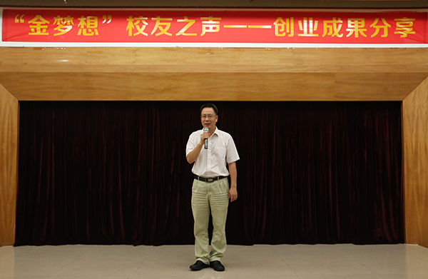 为贯彻落实全国大众创业万众创新活动系列工作,进一步推动我校“双创”工作,10月13日下午,由校团委主办的“金梦想”校友之声——创业成果分享会在我校图书馆学术报告厅举行。出席讲座的嘉宾有:学校党委彭权群副书记,校团委李发武书记、李亚九副书记和学生代表。讲座由校团委李仁煜老师主持。