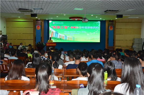 活动开始,陈永国副部长上台讲话,他首先从“雨露工程”实施背景、实施意义、实施计划的具体内容以及未来展望等四个方面介绍了“雨露工程”早餐补助计划,让同学们能够全面了解“雨露工程”,并明确关于管理的具体要求。