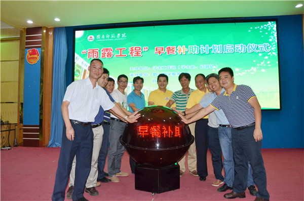 链接:我校从2007年起实施“晨光工程”早餐补助,每天为贫困生免费资助“一只鸡蛋、一个面包、一袋牛奶”的早餐,至今已资助学生两万多人次。但由于“晨光工程”在实施过程中,其不足日渐显现出来,如早餐品种过于单一、食品安全监管难度大、受助学生缺餐现象屡见不鲜等,因此,为了解决这些问题,让这项补助计划继续实施,同时实现更人性化的管理,学生处经调研决定,从今年10月份开始,实施“雨露工程”早餐补助计划,每月定期给家庭经济困难学生每人100元的早餐补助,直接打入学生的一卡通内,让学生在规定时间内到各饭堂自由购买早餐。为了让补助能够发挥最大的效益,学生处制定《岭南师范学院“雨露工程”早餐补助计划实施细则》,对早餐补助的发放与管理做了细致的规定,并联合信息与教育中心专门开发了早餐补助监管系统,对同学们每日早餐的消费情况进行实时监控,确保受助学生每天都能够按时吃早餐,强健体魄,有更好的精神和精力投入到学习与生活中。