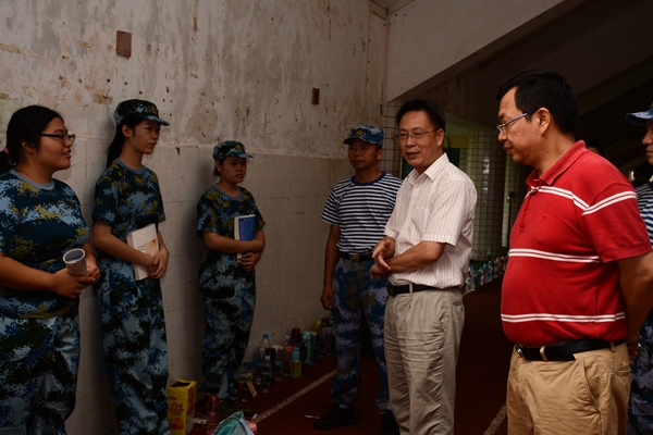 彭权群一行还检查了军训医疗点和新生宿舍内务情况。他要求相关部门和工作人员务必继续做好后勤、医疗、饮水等服务保障。