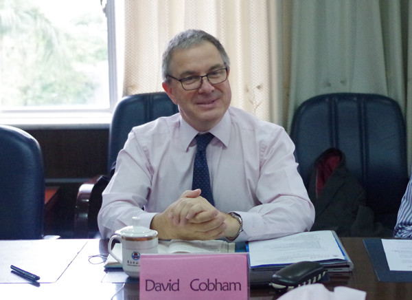黄崴对David Cobham院长和岳士岗教授的到来表示欢迎。双方在我校代表团今年5月访问林肯大学时商谈的合作基础上,就双方合作建立中英国际工程学院、本科联合培养项目、硕博士联合培养项目、科研合作项目和合作成立研究中心四个方面的内容及细节进行了深入探讨,并表示将争取在今年9-10月完成中英国际工程学院的挂牌仪式。双方对两校合作都抱有很高的期待,均表示愿意在未来的合作建设中形成资源共享,加快合作步伐,推动共同发展,实现双赢。