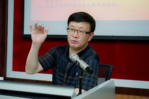 李江凌结合学校发展和工作实际,从学习党章和习近平总书记系列重要讲话入手,以党的民主集中制为主线,讲述了民主集中制的形成与发展、民主集中制的科学内涵、坚持民主集中制的意义、民主集中制与发展党内民主的关系、民主集中制与依法治国的有关系、当前贯彻民主集中制存在问题和建议途径、党史上贯彻民主集中制的会议典范等七方面内容。李江凌通过图文并茂的生动讲解,让在座党员干部深刻体会到开展“两学一做”的重要性和严肃性。李江凌要求党员必须结合自身的工作实际,认真学习好党章、遵守好党章、贯彻好党章,始终保持党员的先进性、纯洁性,不断增强各级班子的团结,强化凝聚力、战斗力和创造力,更好地为建设特色鲜明的高水平师范大学做贡献。