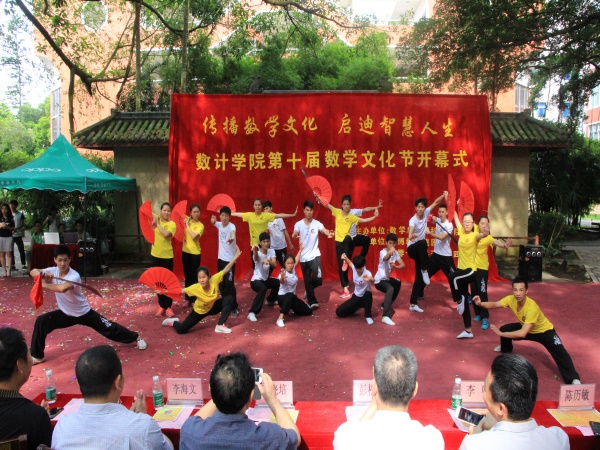开幕式节目精彩纷呈,形式多样。寓意吉祥的传统醒狮表演拉开了文化节的序幕;热情奔放的街舞彻底释放青春正能量;充满活力与激情的武术表演以其娴熟的动作,恰到好处的力度赢得了在场师生的阵阵喝彩;数学几何模型走秀带领观众领略数学文化的严谨和抽象,独具特色的游园活动更是让师生如痴如醉地徜徉在数学的王国之中。