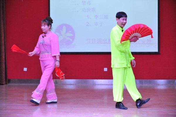 流传在粤西雷州半岛的姑娘歌,是一种价值独特,采用“雷州话”徒口演出,说唱相间,以唱为主的曲艺说书形式。本次展演共演出4场,包括符海燕和陈家悦两位省级姑娘歌代表性传承人在内的11位男女艺人,给我校师生带来了包括劝孝从善主题、历史典故主题、谈情说爱主题、谐趣逗乐主题等8组对歌和《断机教子》、《三孝记》、《婆婆泪》等6部劝世歌节目。这些节目的题材内容丰富多样,既有谈天论地、敦情说理、辩难评议、斗嘴竞技等内容的短篇式“对唱歌”,也有启蒙励志、警世醒顽、宣孝戒赌、抑恶扬善等等的长篇式“劝世歌”。