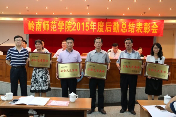 曹巧处长总结2015年度后勤处及实体的工作,并表示后勤产业处全体员工将以先进为榜样,按“十三五”规划目标和要求,不断推进后勤改革,积极构建新型后勤保障体系,为建设特色鲜明的高水平师范大学作贡献。