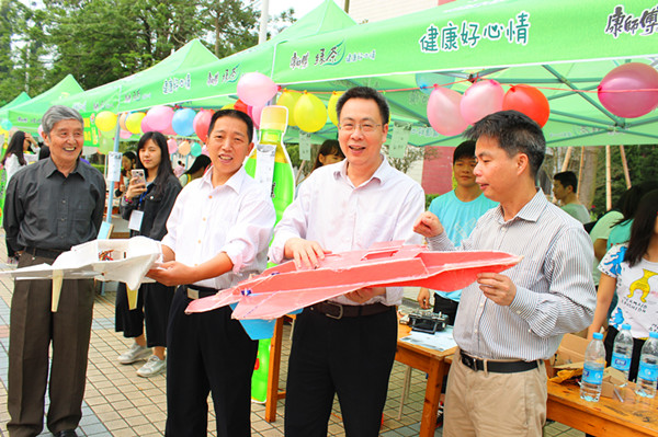 李忠宣布嘉年华活动正式开幕。为记录现场盛大境况,航模科技创新协会派出“一号侦察机”进行航拍,领导和同学们热情地跟镜头打招呼,现场热闹非凡。彭权群与参加活动的领导嘉宾参观了各专业社团的展台,详细了解了每一个参展社团的情况,并参与到社团设计的一些互动环节当中,与同学们进行亲切的交流。在看到学生在社团中依托专业知识,自制3d打印机、航天飞机模型,彭权群更进一步肯定了专业社团对专业知识学习实践的重要作用。在参观完各社团展示之后,领导嘉宾对各社团的成果表示称赞,并希望各社团继续创新,继续努力,力争将社团办得更好。