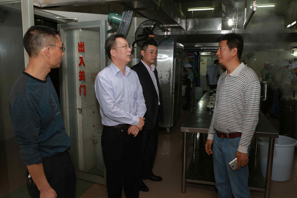 彭权群一行到鸿园食堂进行了深入细致的检查,仔细察看了厨房操作间、仓库、消毒间、售饭窗口,对食堂的饭菜质量、食品卫生、餐具消毒等进行了检查,并详细询问食品采购、饭菜品种等情况。通过检查,彭权群对食堂的安全卫生工作给予了充分肯定,同时也强调伙食工作一定要以安全卫生为中心点,进一步改善食堂的伙食结构和饭菜质量,给学生提供更营养、更美味、更安全的饭菜。