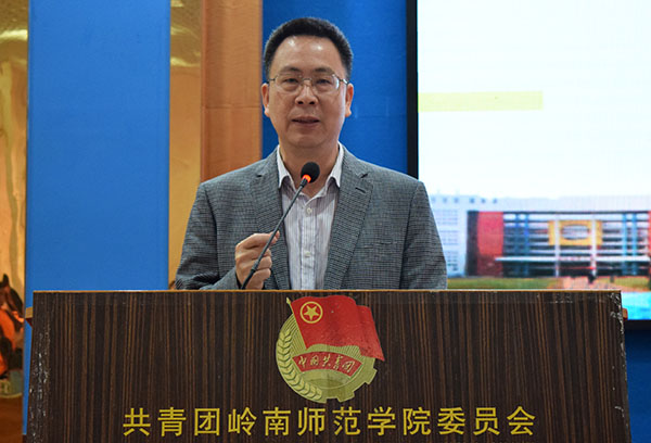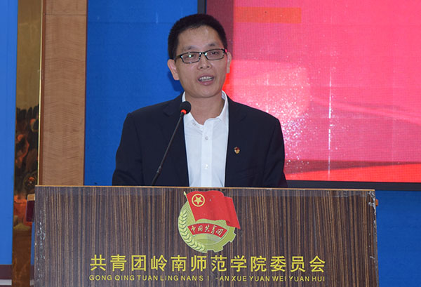 郭和才传达了上级相关会议精神 ,并对去年工作作了总结和对本学期作了工作安排。他对我校在2015年取得的优秀成果给予高度肯定,并从四个方面对上学期的工作作了简单的总结。一是夯实团组织工作基础,以“第十三期团校培训班”及“活力在基层”“基层团支部活力提升工程”为学习平台,践行“四进四信”精神。郭书记提到,我校在上一学期荣获全国“三下乡”社会实践优秀组织等市级以上870多项集体奖项。团建宣传网络舆论平台“岭师青年”等也多次进入全省排行榜前15名。二是科研竞赛、“岭南创业论坛”引领创新创业之路。我校在广东省第十三届“优胜杯”、全国第十四届“挑战杯”竞赛中屡创佳绩。三是文体建设放光彩,成功举办第二十三届文体艺术节、五月风社团文化节等,彰显校园文化好气象。四是志愿服务贡献突出。特别是在第十四届省运会和第七届残运会中,我校的志愿服务均表现得非常出色。此外,我校的“曦望”社会实践队也获2015年全国大中专学生“三下乡”社会实践活动优秀团队。