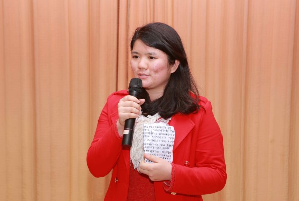 随后,学生代表苏细妹向领导老师和同学们分享了自己在校期间受资助和自立自强的经历。她表示希望通过自己的努力回报所有帮助自己的人,不辜负国家和学校的资助,在新的一年里会更加努力。