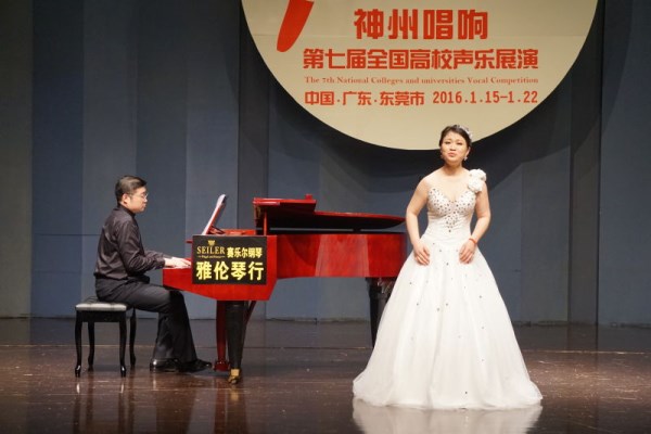 1月24日,“神州唱响”第七届全国高校声乐展演暨2016东莞东城音乐文化活动周在东莞东城影剧院隆重开幕。我校音乐学院院长孙建华教授特邀担任学生民族唱法评委会主任兼首席专家评委,该院声乐系主任姜会敏老师演唱中国经典民族歌剧白毛女选段《恨似高山仇似海》荣获教师组民族唱法银奖,学生蔡金豪、邓颖、李迎璐、罗佩华等学生分别获得铜奖和优秀奖。
