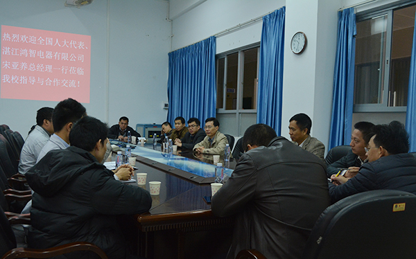 岭师新闻中心讯:“我校在保持师范院校特色的同时,也致力于培养应用型人才,通过加强校企合作使学校的研究成果更多地面向地方,服务于地方。”邵乐喜副院长在会见全国人大代表、湛江鸿智电器有限公司总经理宋亚养时说。12月16日上午,宋亚养率企业骨干团队到我校洽谈项目共同开发,双方将在智能化和新材料等项目开展合作。