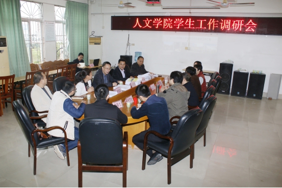 12月16日,学校党委彭权群副书记带领学生处李粤处长、正处级干部李爱群、陈永国副处长、易如副处长、思教科王兴刚科长等一行莅临人文学院调研学生工作,调研会议在人文学院会议室举行。人文学院党委柯春明书记、刘惠卿院长、钟明杰副书记以及全体辅导员出席调研会。