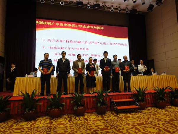 2015年11月25日下午,在广州市三寓宾馆召开广东省高教保卫学会成立20周年大会。会议表彰了为维护高校安全稳定、保障保卫学会各项工作顺利进行等方面做出突出贡献的同志,我校保卫处林森处长被评为“特殊贡献工作者”,获此殊荣的全省仅8人。林森处长在我校安全保卫工作岗位上已工作30多年,对安全保卫工作有一份难以割舍的情怀。多年来他求真务实,敢于创新,屡获嘉奖。