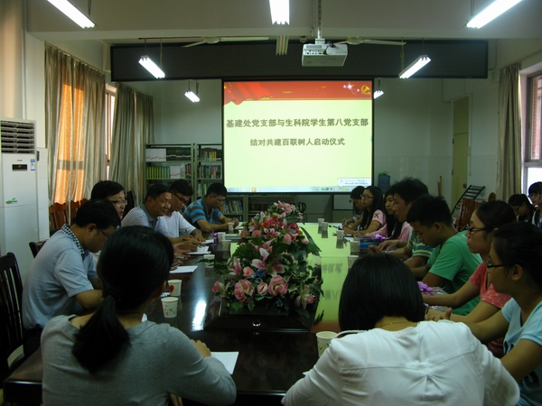 为了充分发挥党组织的先进性,教育引领学生的发展,助力学生成长成才,落实“立德树人”的根本任务, 11月18日,基建处党支部与生科院学生第八党支部在生科院会议室举行结对共建“百联树人”启动仪式。校党委常委、副院长李江凌以普通党员身份参加了启动仪式,基建处党支部侯平均书记、生科院党委袁长春书记、郑侯锦副书记、两个党支部的相关老师以及学生党员代表出席了会议,会议由基建处副处长梁伟民主持。