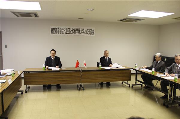 代表团一行结束韩国三所大学的访问后,从首尔转机,开始了对日本友好学校的交流访问。11月2日,代表团一行首先访问了日本作新学院大学,受到了该校太田周校长等相关人员的热情接待,除了两校正在合作的2+2、4+2学生留学项目外,双方还就3+2(我校学生在国内学习3年,在作新学院大学学习2年拿到硕士文凭)项目进行了探讨,也在进一步加以完善目前两校间的学分互换制度等方面达成一致。代表团一行还参观了该校校园,特别是对该校的现代化图书馆设施及藏书印象深刻。代表团一行随后与我校在作新学院大学的交流生进行了会谈,彭权群副书记代表学校亲切问候交流生们,并认真聆听了他们在国外的学习、生活情况,叮嘱他们要严格遵守交流学校的规章制度,尊重当地的风俗习惯,努力学习,积极实践,拓展知识,增强素质,学有所成。