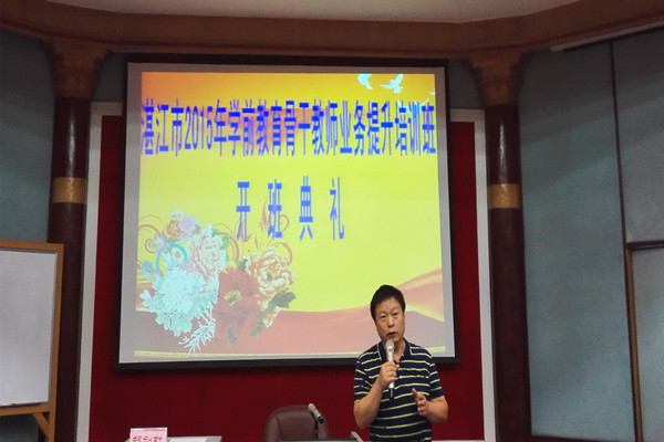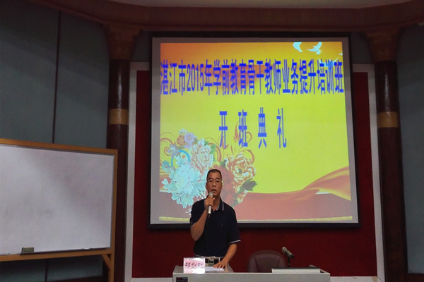 湛江市教育局副局长周伟武在致辞中指出,人生百年,始于幼学,学前教育是基础教育的起点、是终身教育的开端,对于开发儿童的潜能,推动儿童健康成长成才都将起到至关重要的作用。他向学员们提出要求:要珍惜学习机会,认真学习;学员之间要加强交流,提高学习效率;学以致用,将所学知识很好地运用到工作中去,为湛江市的幼儿教育做出贡献。