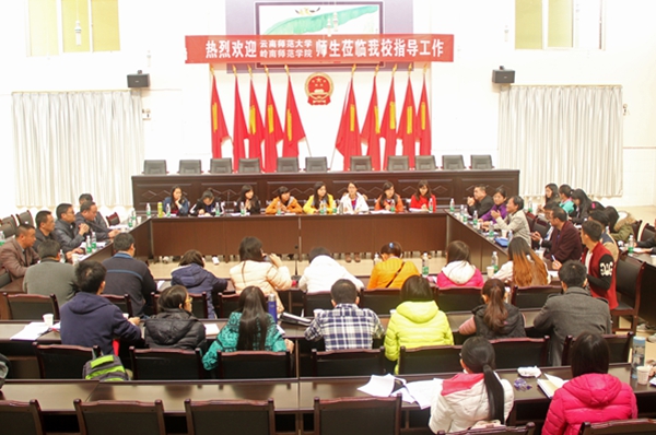 10月25日中午,岭师观摩考察团师生一行35人兵分两路从广州和湛江先后出发,在历经20多个小时的火车旅程后,在云南昆明市顺利会师。云南师范大学王凌教授及他的研究生们热情迎接了考察团一行。大家安顿好住宿后,马上举行了第一次会议。会上,左兵副院长介绍了参与本次观摩调研的教师,说明了此次云南观摩学习之行的意义和任务;刘海涛教授给大家讲授了如何通过微平台做微型教育叙事研究,建议同学们以此次云南观摩学习为契机,学习利用微信分享教育体验和教育反思;王凌教授介绍了云南教育的现状以及与其他地区的差距。按照行程安排,26—27日将到寻甸县的甸沙乡及六哨乡参观学习,师生们纷纷表示非常期待这次的“上山下乡”。