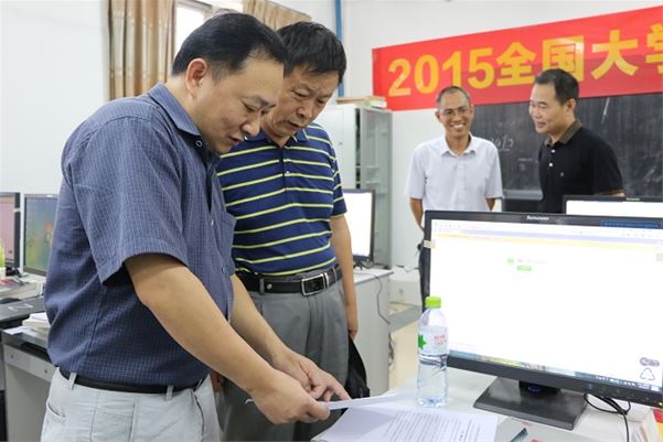 9月11日下午,黄钢副院长在教务处谭荣波副处长、数计学院院长李晓培教授、副院长谷秀川教授和党委唐洪浪副书记等陪同下,莅临生化楼信息与计算科学专业实验室2015年全国大学生数学建模竞赛现场指导工作,对参赛学生进行亲切慰问。