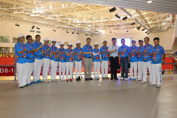 7月20日上午,我校党委彭权群副书记在校团委郭和才书记、卢福老师的陪同下,抵达奥体中心篮球馆,亲切看望慰问我校的150名省运会篮球赛事志愿者。
