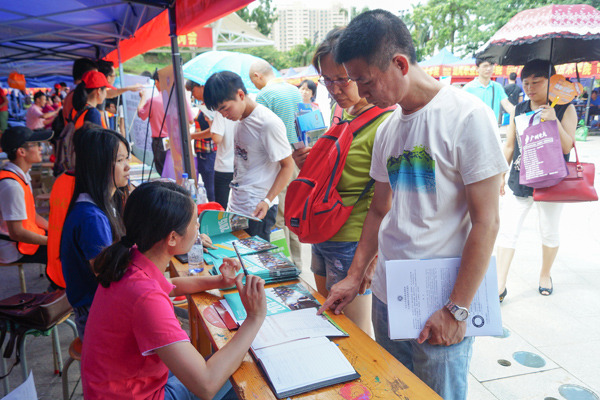 我校党委刘海涛副书记在招生与就业处钟炳辉处长以及周明俊科长的陪同下巡视了咨询会现场,慰问在烈日下坚守工作岗位的老师们,叮嘱他们要尽力为考生家长答疑解惑,大力宣传学校品牌。并安抚在音乐厅外焦急等待讲座的家长们,许诺会让广大家长和考生得到心满意足的咨询。