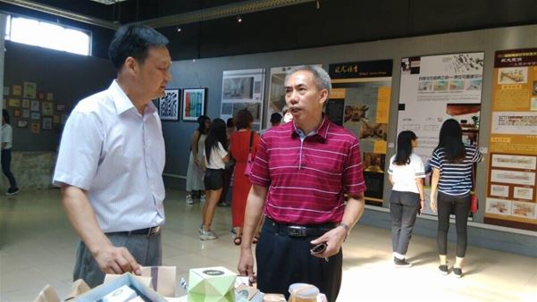 6月17日上午,我校刘周堂副院长、邵乐喜副院长、党委组织部陈明娟科长,九三学社湛江市委会办公室张文富主任、九三学社岭师基层委员会主委崔静教授,先后在美术学院巨云和院长等陪同下参观了美术学院2015届毕业生设计作品展。