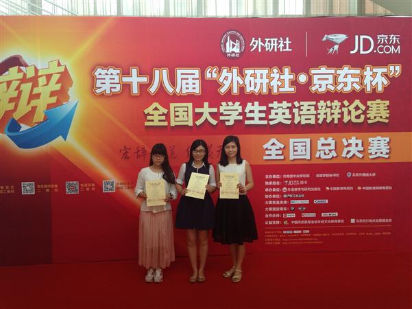 5月18日至24日,第十八届“外研社•京东杯”全国大学生英语辩论赛全国总决赛在外研社大兴国际会议中心举行。近日获悉我校外国语学院严双婵、彭靖敏两位同学获得本次全国赛三等奖,这是我校第一次在该项赛事取得最好成绩。