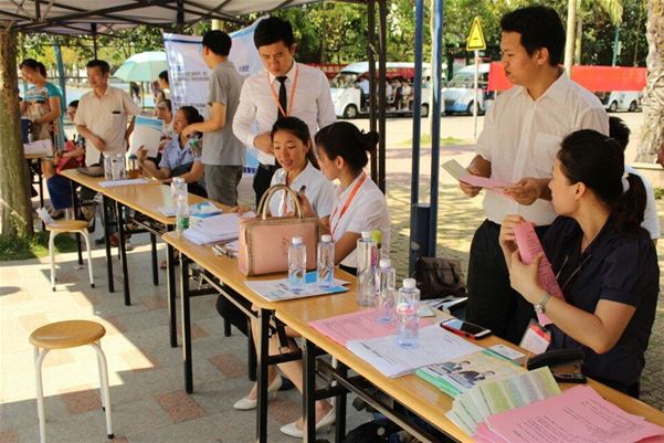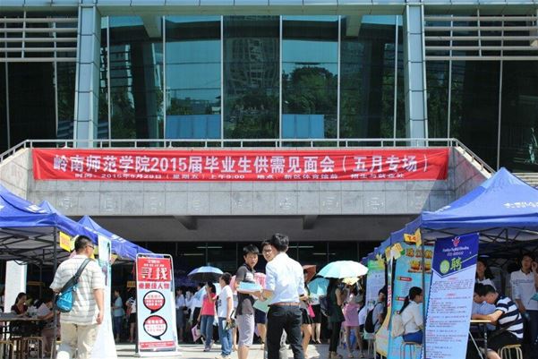 5月29日上午9点,我校 2015届毕业生就业供需见面会(五月专场)在体育馆前成功举办,本次招聘会共邀请了茂名技师学院、东莞联合高级技工学校、国联水产、蒙牛乳业、星火国际教育集团等62家来自珠三角、粤西等地区的学校、企业和教育机构前来招贤纳士。现场提供就业岗位近 950个,近千名(次)毕业生参加了此次招聘会。