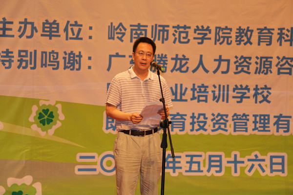 校党委彭权群副书记、教务处程可拉处长、党委宣传部谢应明部长、校团委郭和才书记、广东腾龙人力资源咨询有限公司董事长黄南迪、广东朗培教育投资管理有限公司总经理龙东先生、湛江市特殊教育学校黄岱校长、岭南师范学院附中王健副校长、湛江市第八小学谢文东校长、湛江市第十六小学邱惠群校长、岭南师范学院幼儿园李晓红园长及教科院党政领导班子、全体教职员工出席了活动。我校音乐学院舞蹈系主任朱培科老师、郭成龙副教授、于绍峰老师和附中特聘教师雷莹晖老师担任了文化节最后两个竞赛项目的评委。