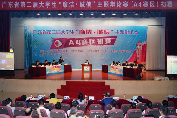 岭师新闻中心讯:5月7—8日,由广东省委教育工委、省教育厅、省教育纪工委、团省委主办,我校承办的广东省第二届大学生“廉洁·诚信”主题辩论赛(A4赛区)第二轮赛事在我校音乐厅举行。学校党委书记梁英,党委副书记、纪委书记彭权群以及学校相关职能部门负责人、二级学院团委负责人出席了活动。佛山科学技术学院、广东石油化工、肇庆学院、广东医学院、北京理工大学珠海学院、五邑大学、岭南师范学院和吉林大学珠海学院8所高校的代表队参加了本轮赛事。