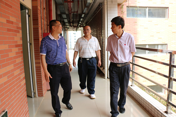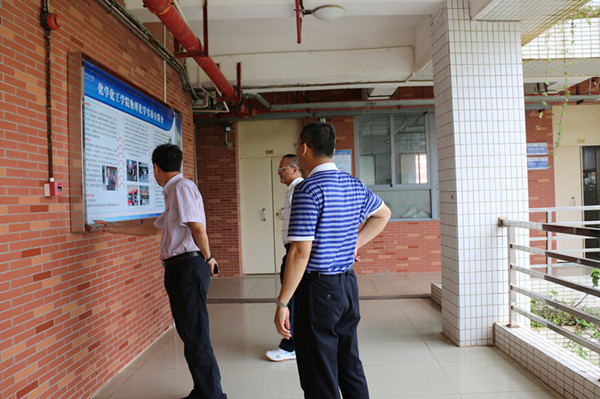 4月29 日下午,学校邵乐喜副院长到第四教学楼a栋检查、指导化学实验教学示范中心的建设工作。化学化工学院党委书记付继发、副院长朱国贤和实验中心副主任谢木标及相关实验室管理人员陪同开展检查工作。