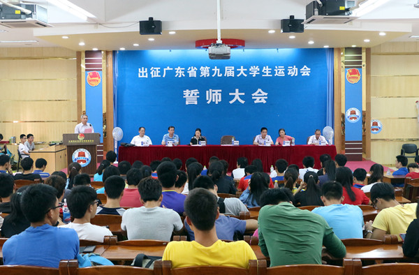 广东省第九届大学生运动会即将到来。4月29日下午,广东省第九届大学生运动岭南师范学院代表团誓师大会在弘雷楼311举行。代表团团长学校刘周堂副校长,代表团副团长体科院党委曹巧书记,代表团副团长体科院章晓霜院长,代表团秘书长体科院肖洁副院长,代表团副秘书长学校团委郭和才书记,学校学生处正处级干部李爱群同志,学校教务处谭荣波副处长,体科院全体领导班子,各代表队领队、教练员以及运动员出席本次大会。本次大会由体科院章晓霜院长主持。