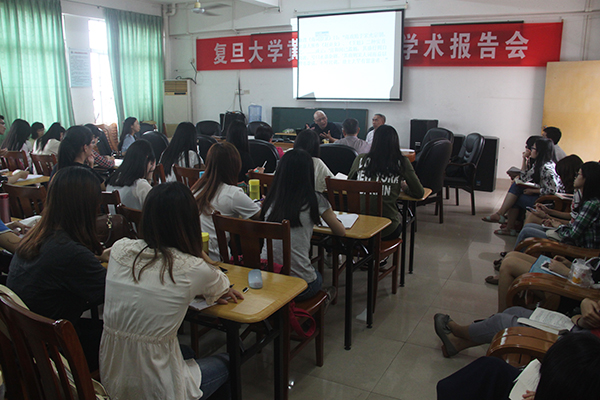 黄教授举例解读《般涉调·耍孩儿》这首戏曲时,运用了浅显易懂的白话,使同学们听得津津有味。在整个报告会过程中,黄教授声情并茂而不失风趣的讲说风格,赢得在座同学们阵阵掌声。