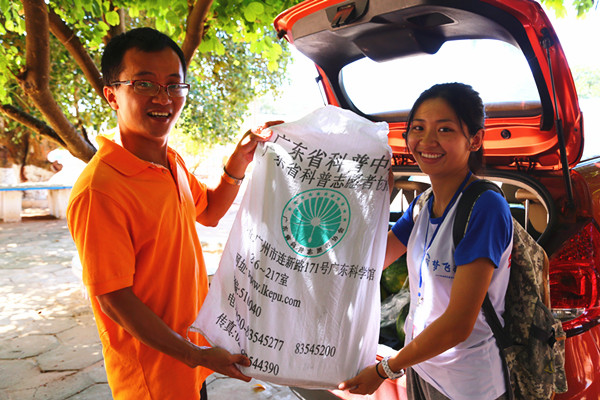 教科院“宣梦飞扬”实践队已连续两年在雷州市乌石镇潭板小学开展“三下乡”社会实践活动,2014年还通过竞争申报成功成为广东省“千乡万村科普惠农行动”服务队,赢得广东省科协物资支持,为基层送去了一系列兼知识性与趣味性的科普惠农活动,有效提高农民科学素养,改变生活陋习。实践队服务期间尽管遭遇超强台风“威马逊”的吹袭,全体实践队员依然保持友爱互助、乐观积极的心态,在停水、停电、交通中断的情况下仍尽力帮助村民进行灾后重建,赢得了地方群众的认可。