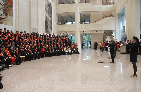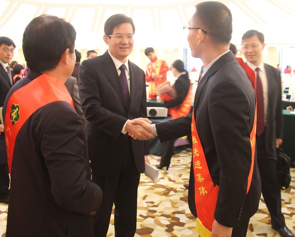 15日上午,在珠岛会堂大堂,省委书记胡春华、中国残联理事长鲁勇、省长朱小丹、省人大常委会主任黄龙云、省领导马兴瑞、徐少华、林木声、邓海光、梁伟发等接见参加广东省自强模范暨助残先进表彰大会的受表彰代表并合影留念。我校团委郭和才书记出席本次表彰大会。