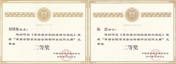 我校生科院高度重视此次大赛,从全院近50份作品中选出5份上交到大赛组委会,最终一份作品获得大赛二等奖。刘锴栋老师和陈思同学共同撰写的《食品添加剂的真相与误区》正是针对当前全社会对于食品添加剂的认识误区,通过通熟易懂的语言描述食品添加剂的真实内涵,从而引导消费者正确认识和对待食品添加剂。