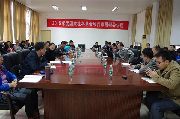 12月3日上午,2015年国家社会科学基金项目申报辅导讲座在学校三号会议室召开。讲座由科研处金义富处长主持,主讲嘉宾为首都经济贸易大学杨河清教授。
