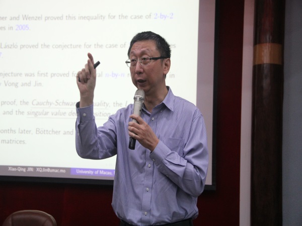 金小庆,澳门大学数学系系主任,教授,博导。主要研究方向是科学计算,数值线性代数、优化及金融数学。1982年于南京师范大学数学系获学士学位,1986年于香港中文大学数学系获硕士学位,1992年于香港大学数学系获博士学位。毕业后一直在澳门大学从事教学和科研工作,获得澳门大学学术研究奖、长期服务奖等,中国工业与应用数学学会和中国数学会计算数学学会理事。先后在美国加州大学洛杉矶分校、台湾大学、香港中文大学、中科院、复旦大学、浙江大学等做访问研究员或访问教授。主持澳门基金项目多项,已发表学术论文80多篇,其中若干论文发表在《siam j. sci. comput.》、《siam j. numer. anal.》、《siam j. matrix anal.appl