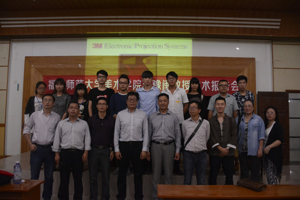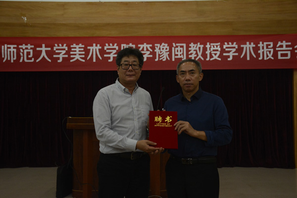 11月27日晚,福建师范大学美术学院李豫闽教授的受聘仪式及“闽台民间美术的背景与图式”主题学术报告会在图书馆学术报告厅举行。岭南师范学院副院长刘周堂为李豫闽教授颁发客座教授聘书,美术学院领导班子成员及部分师生等二百余人聆听了此次报告会。报告会由美术学院副院长乔志强主持。