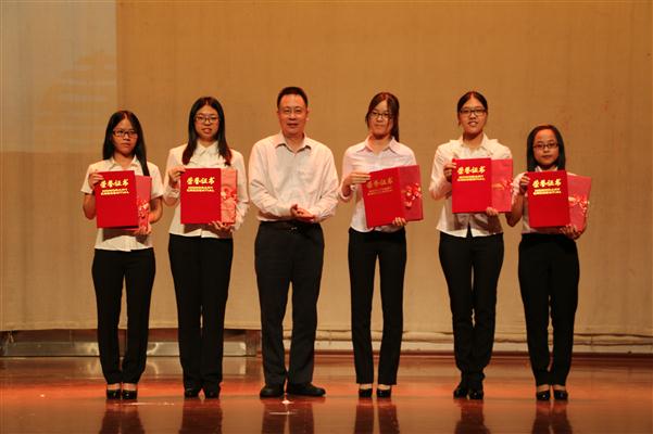 最后,学校党委彭权群副书记与出席大会的领导、嘉宾为获奖同学颁发了荣誉证书。